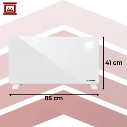 El radiador ofrece 3 modos de calefacción (ECO / confort / espera), termostato de 5–50 °C, temporizador de 24 horas y planificación semanal. Para un funcionamiento seguro, está equipado con protección IP24, doble protección contra sobrecalentamiento y interruptor antivuelco. Las patas estables y las ruedas incluidas facilitan la colocación y la movilidad.