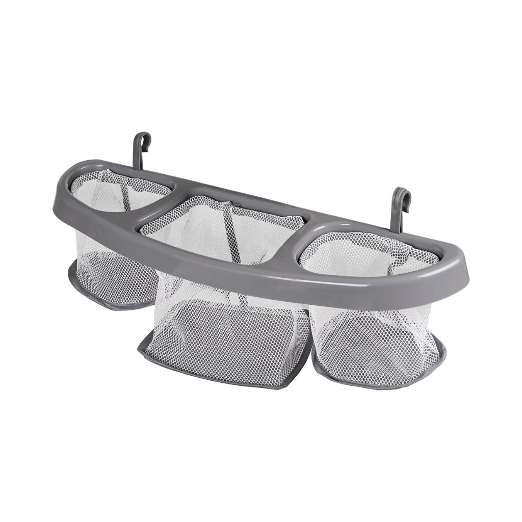 Tenga pañales, toallitas y cremas al alcance. El organizador colgante con tres compartimentos y el bolsillo lateral mantienen todo ordenado y limpio.