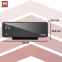 La cortina de aire mural KAMINER ZELVION combina un diseño moderno con gran potencia para hogares, oficinas y comercios. Gracias a sus tres modos (ventilación / aire templado / aire caliente) es ideal para uso durante todo el año. El control Wi‑Fi (Tuya Smart) y el mando a distancia permiten un control total de la calefacción desde cualquier lugar.