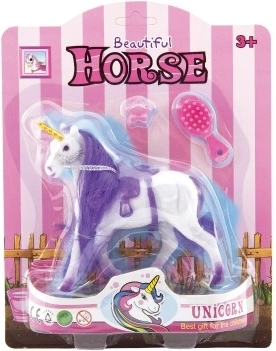 Elige entre unicornio blanco con crin morada o rosa. Ambas versiones se complementan con un cuerno dorado y accesorios con estilo.