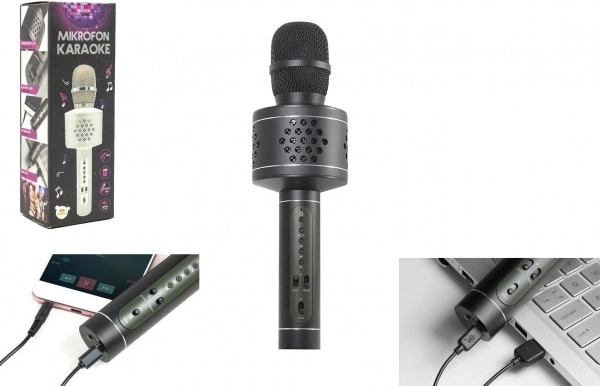 - micrófono karaoke, cable de carga USB–Micro USB, cable de audio, manual de usuario