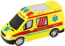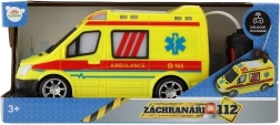 Ambulancia amarilla llamativa con detalles de AMBULANCE y luz funcional para fomentar el juego creativo de los pequeños rescatistas.