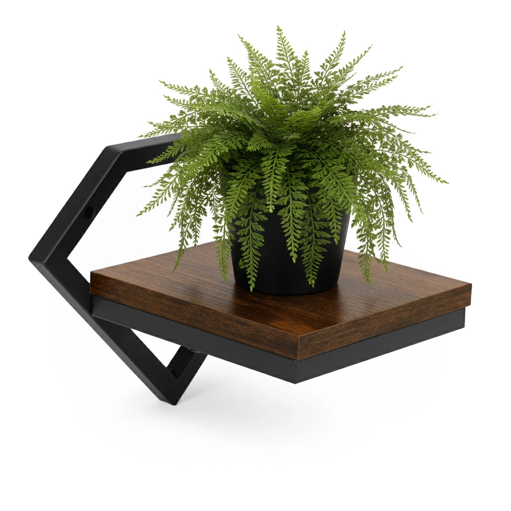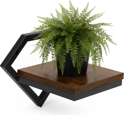 Estante de pared con estilo, con marco de acero en forma de diamante y balda de madera, ideal para exhibir tus plantas y decoraciones. Ofrece diseño industrial moderno, estructura estable de acero con recubrimiento en polvo, fácil montaje en la pared con juego de tornillos incluido y capacidad de carga de hasta 10 kg.