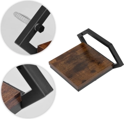 El marco de acero con recubrimiento en polvo es resistente a la corrosión y al desgaste mecánico, mientras que la balda de tablero aglomerado con acabado imitación madera aporta calidez y contraste. El paquete incluye un juego de montaje completo (tacos, tornillos y embellecedores), para que tengas todo a mano desde el primer momento.
