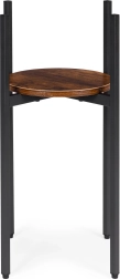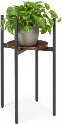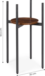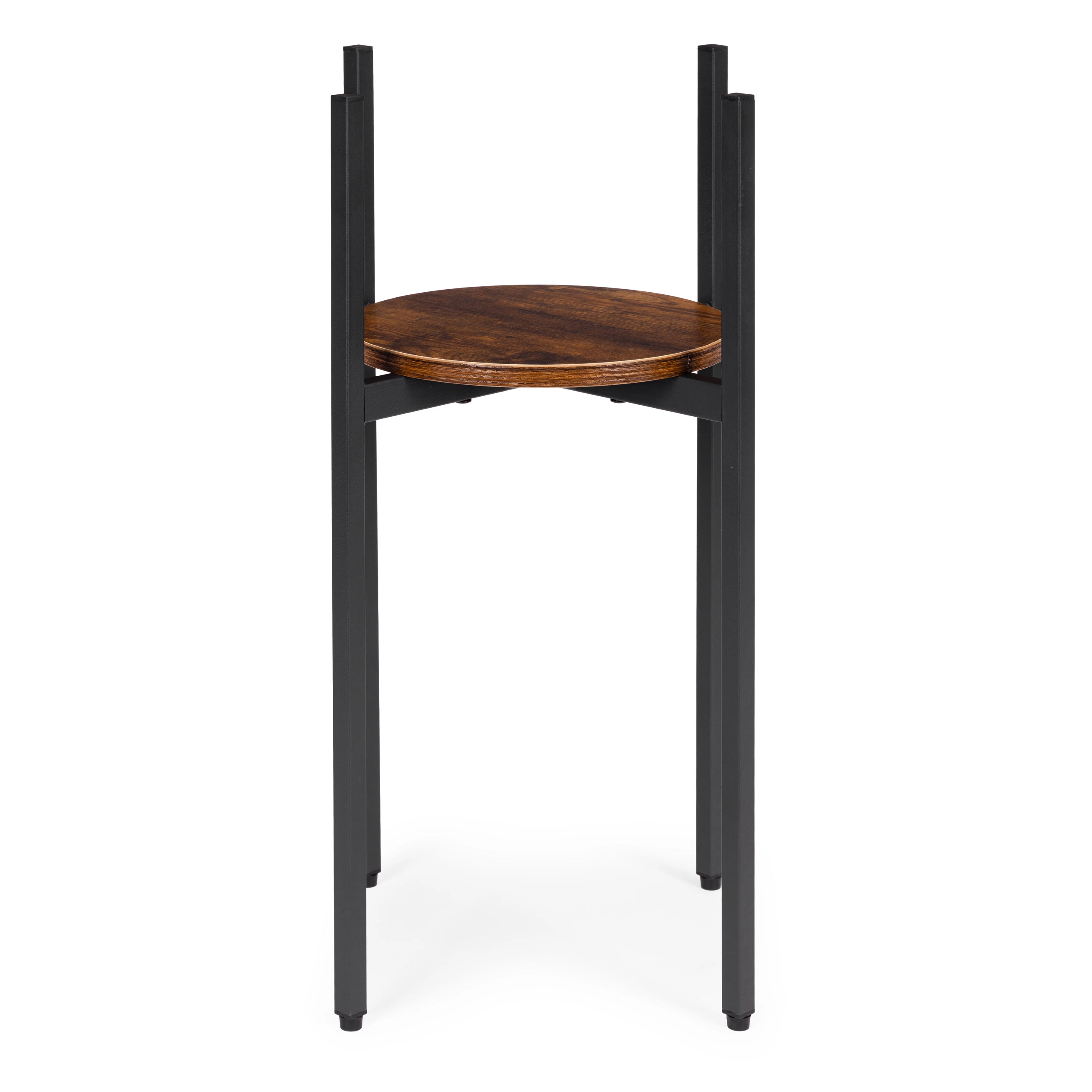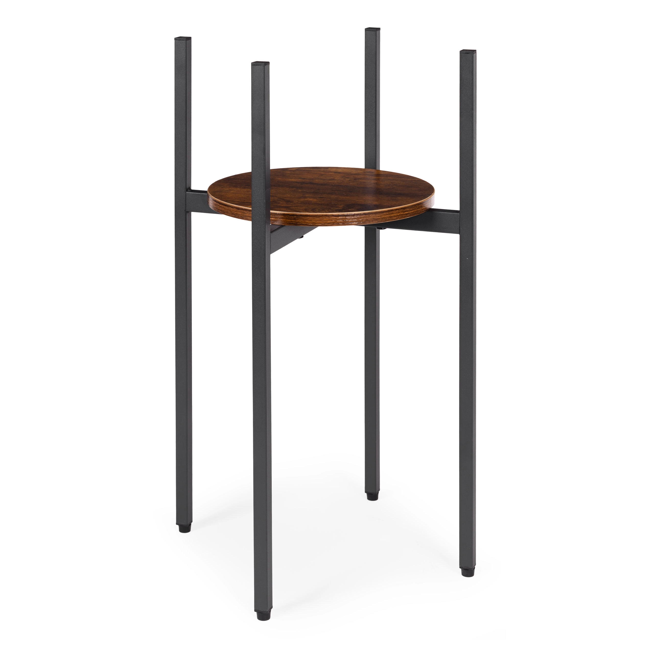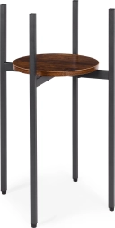 Este soporte alto para plantas de estilo industrial realza tus plantas y añade ligereza y elegancia al interior. El acero con recubrimiento en polvo es resistente a la corrosión y a los arañazos, mientras que la repisa circular de aglomerado con acabado en madera natural subraya el carácter loft. Gracias a su huella esbelta, encaja fácilmente en espacios pequeños junto a una ventana, al lado del sofá o en el recibidor.