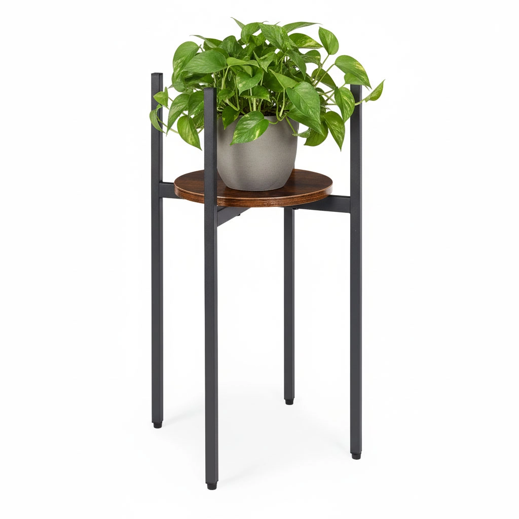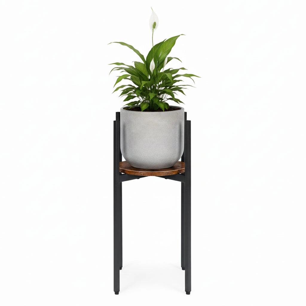 El marco de acero con recubrimiento en polvo garantiza una alta resistencia a la corrosión y al desgaste mecánico, por lo que el soporte sostiene con firmeza incluso macetas más pesadas.