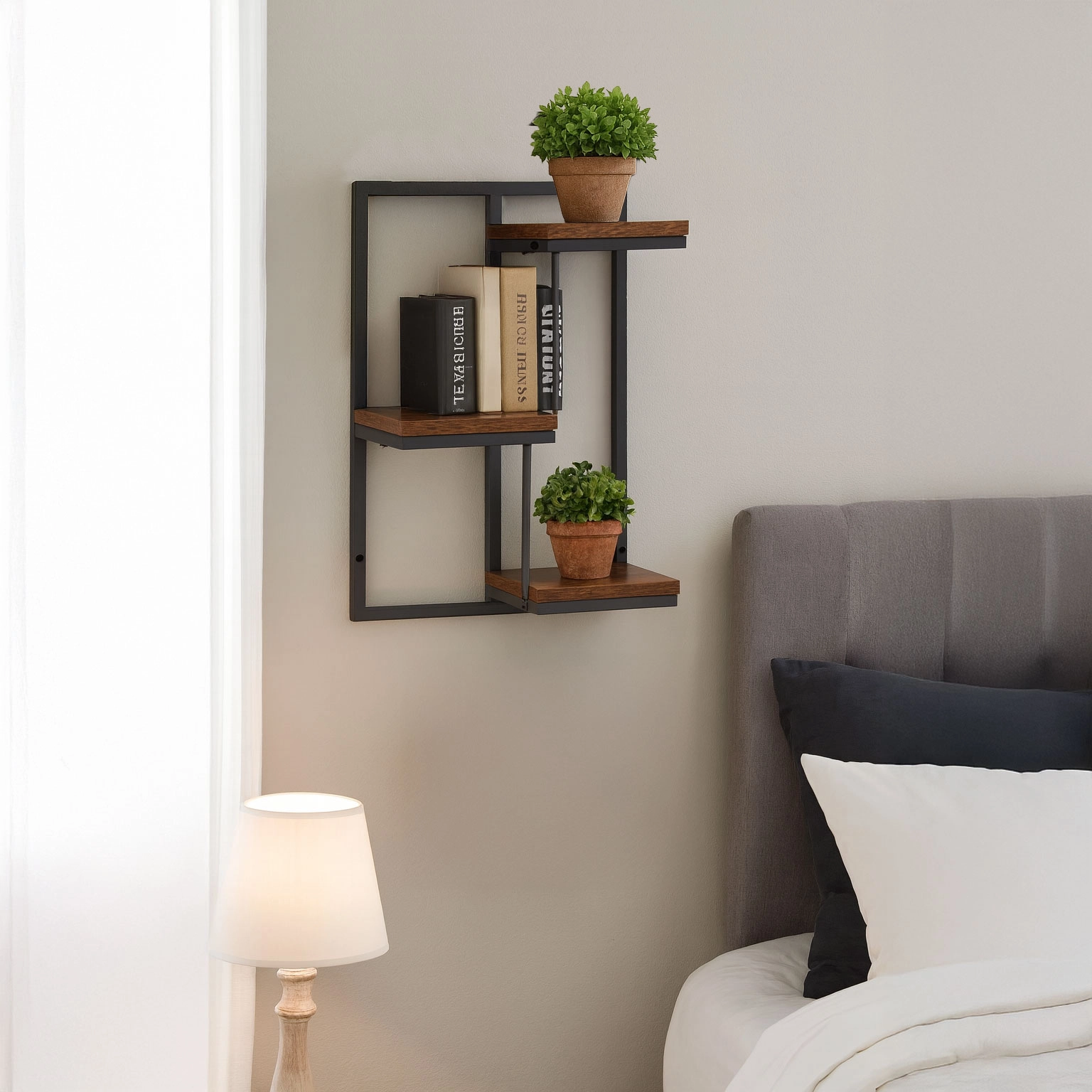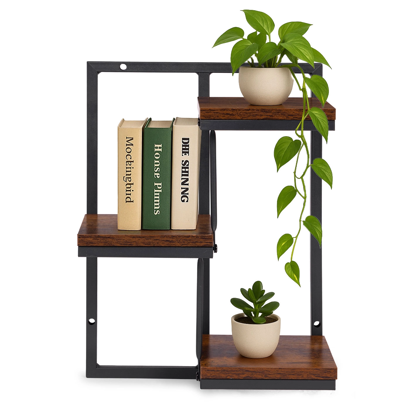 Las tres baldas dispuestas de forma alterna ofrecen espacio suficiente para hierbas, suculentas y decoraciones sin ocupar superficie en el suelo.