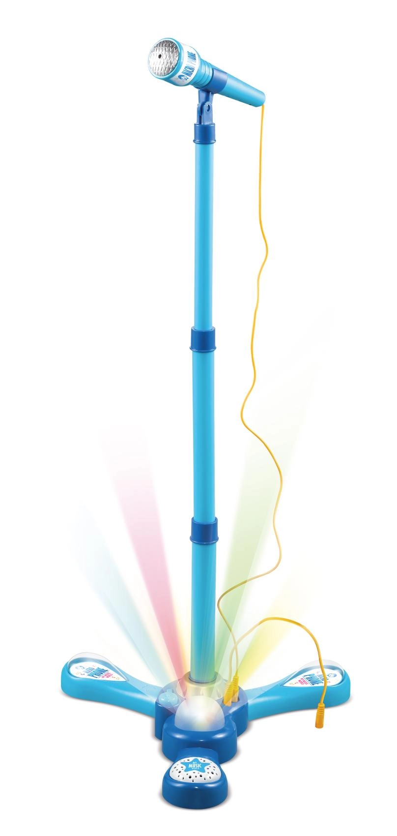 La base y el micrófono iluminados crean un impresionante espectáculo de luces que aporta atmósfera de escenario al canto.