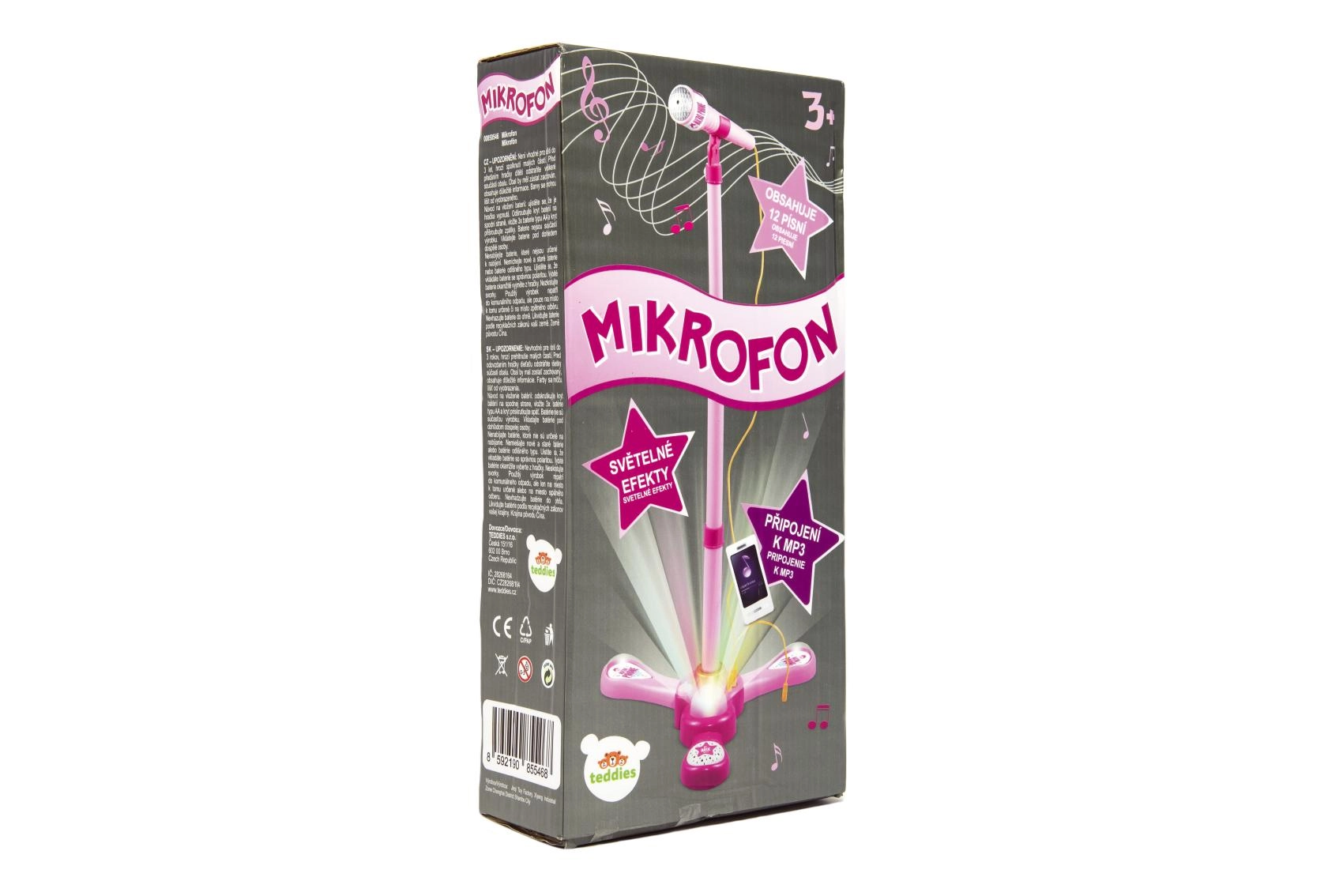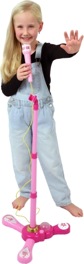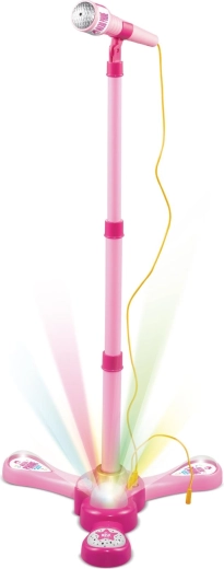 El micrófono karaoke rosa con soporte convierte cualquier habitación infantil en un escenario. Ofrece 12 canciones integradas, efectos de luz de colores y la posibilidad de conectar un MP3 o un móvil. Gracias a su altura ajustable de 40–80 cm, crece con el niño y es ideal para pequeños cantantes a partir de 3 años.