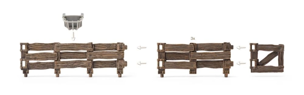 - Estación de safari completa – cabaña sobre pilotes, barandilla, escalera, cercados, carrito y herramientas prácticas.