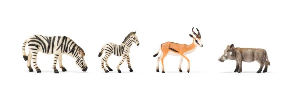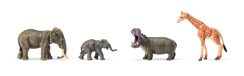 Desde crías hasta animales adultos: la combinación de elefantes, jirafas, cebras, antílopes o hipopótamo fomenta escenarios creativos y horas de juego.