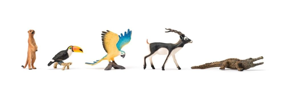 El set incluye figuras cuidadosamente modeladas y pintadas: desde el majestuoso elefante y la jirafa hasta el león, la cebra y el cocodrilo. Ideales para jugar y para aprender los nombres de los animales.