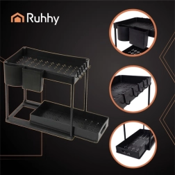- Organizador Ruhhy de dos niveles para debajo del fregadero