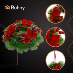 La elegante corona navideña RUHHY de 30 cm de diámetro aporta de inmediato a tu hogar un ambiente festivo. Gracias a sus frondosas ramas verdes, bayas rojas y piñas naturales, parece real, pero no requiere mantenimiento. Es ligera, resistente e ideal para la puerta de entrada, sobre la chimenea, en el recibidor o como decoración de mesa.