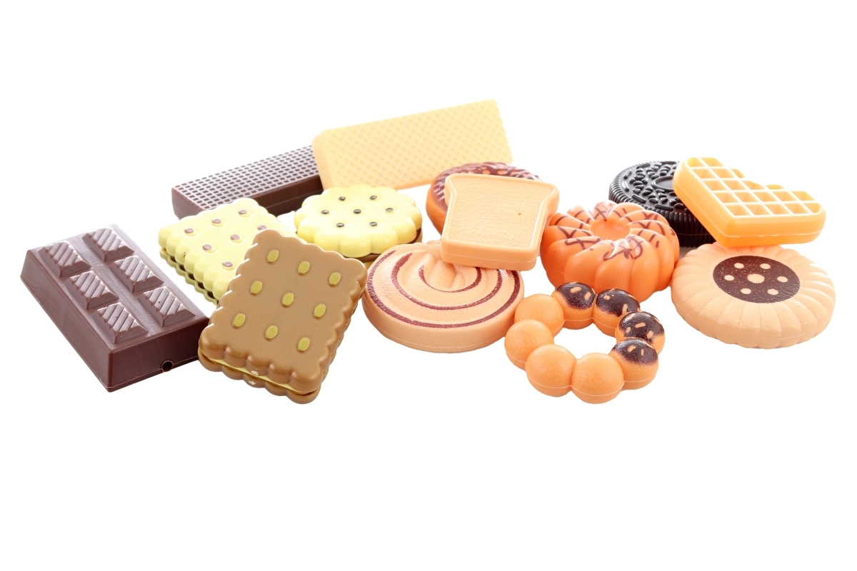 Divertido juego de comida infantil que incluye obleas, galletas, chocolate y gofres de plástico de calidad. Ideal para jugar a la cocina y fomentar la imaginación y las habilidades sociales. Se entrega en una caja de regalo. Apto para niños a partir de 3 años.