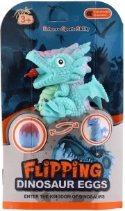 ¡Basta con voltearlo una vez y el dinosaurio se convierte en una figura articulada o se queda cómodamente en el huevo!