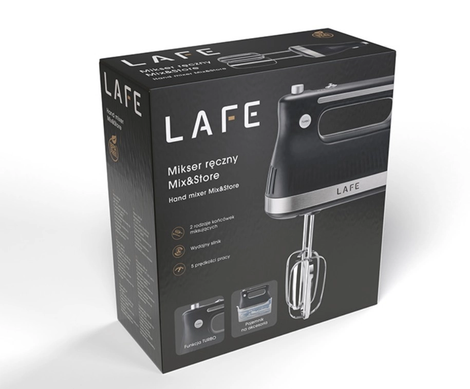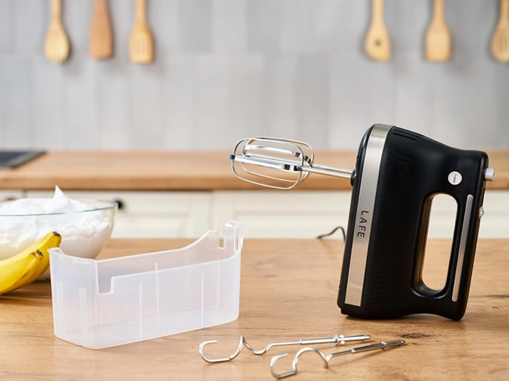 La batidora de mano LAFE Mix&Store es un ayudante fiable para hornear y cocinar a diario. Ofrece potencia de 500 W, 5 velocidades y función Turbo para fuerza extra. En el paquete encontrarás 2 tipos de accesorios (varillas y ganchos amasadores) y una práctica caja de almacenamiento, para tenerlo todo siempre a mano y en orden.