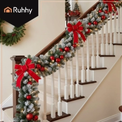 Crea magia festiva en pocos minutos. El denso follaje con efecto nevado parece una rama real y garantiza un aspecto lleno y elegante en la chimenea, la escalera, la barandilla y la puerta de entrada. Gracias al marco metálico flexible, podrás dar forma a la guirnalda exactamente como necesites.