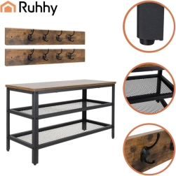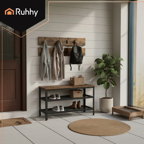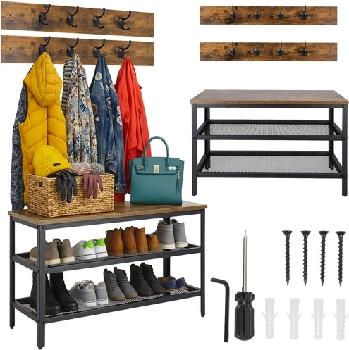 Estilo, orden y funcionalidad en uno. Este organizador 2 en 1 combina zapatero, banco y perchero en una solución compacta ideal para recibidores, pasillos y vestidores. Los estantes de rejilla favorecen la circulación del aire, reduciendo la humedad y los olores del calzado, mientras que el marco de acero con recubrimiento en polvo garantiza una larga vida útil.