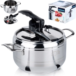 Gracias al fondo sándwich de 3 capas, se garantiza una distribución uniforme del calor y estabilidad en todo tipo de fuegos, incluida la inducción. La olla es fácil de mantener: el cuerpo se puede lavar en el lavavajillas (sin la tapa). Producto original de la marca ORION fabricado de acuerdo con las normas europeas.