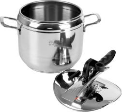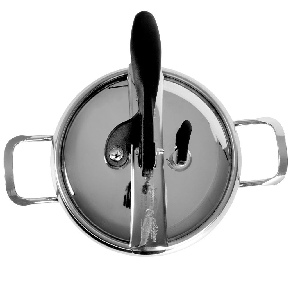 Gracias a las dos válvulas de seguridad, la posibilidad de regular la presión y el sistema de cierre fiable, el uso de la olla es extremadamente seguro. La empuñadura de la tapa, de baquelita, se mantiene agradablemente fría. La olla es compatible con cocinas de gas, eléctricas, vitrocerámicas, halógenas e inducción. Para un mantenimiento sencillo, se puede lavar en lavavajillas (sin la tapa).