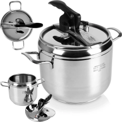 Doble dispositivo de seguridad, posibilidad de regular la presión y cierre fiable de la tapa para una cocción sin preocupaciones.