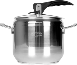 La olla a presión PROFI 5 l es una gran elección para la cocina diaria cuando quieres ahorrar tiempo y energía. Acorta varias veces el tiempo de preparación de los alimentos y, al mismo tiempo, ayuda a conservar más sabor y nutrientes. El acero inoxidable de alta calidad y el fondo de triple capa garantizan resistencia, calentamiento uniforme y una larga durabilidad.