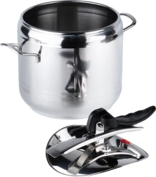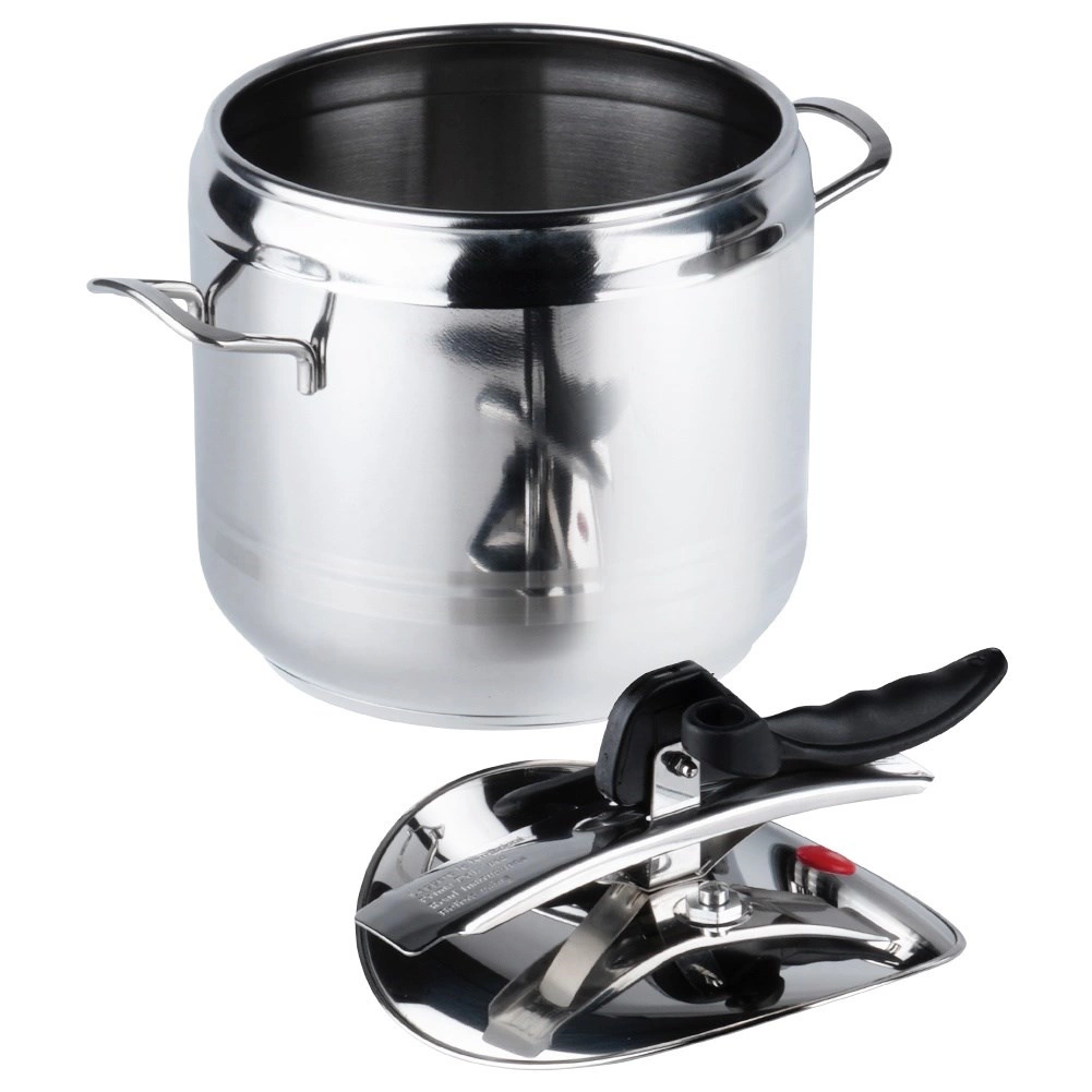 La olla a presión Profi 7 l es una ayuda fiable para cualquier cocina. Permite cocinar a alta presión, acortando notablemente el tiempo de preparación de los platos y ahorrando energía al mismo tiempo. Su diseño robusto en acero inoxidable, el fondo sándwich tricapa y el sistema de cierre bien pensado garantizan una larga vida útil y comodidad en el uso diario.