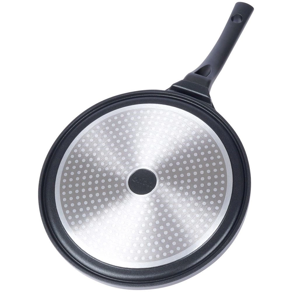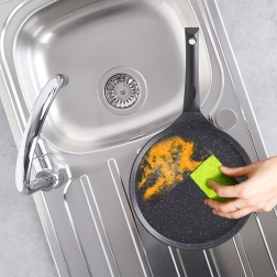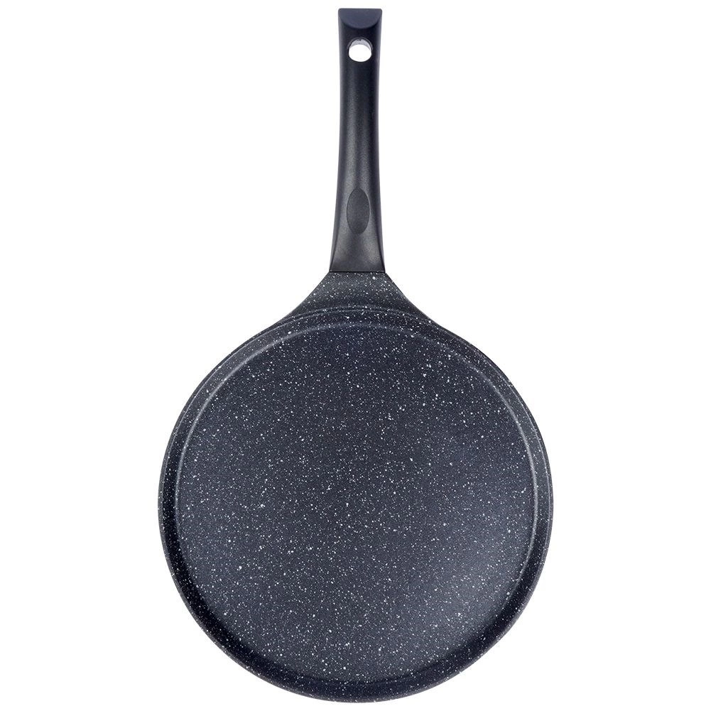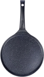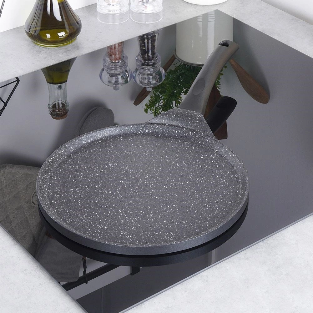 Descubra la práctica sartén para crepes GRANDE con acabado de superficie granítica, que garantiza un dorado perfectamente uniforme y un volteo sencillo. La superficie antiadherente sin PFOA ni PTFE es segura para los alimentos y minimiza la necesidad de aceite, para preparar crepes, tortitas y tortillas ligeras y crujientes.