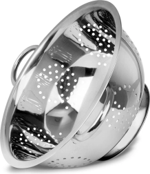 Las asas laterales ergonómicas permiten un agarre firme y un transporte sencillo, mientras que el acero de calidad garantiza larga durabilidad, higiene y una limpieza fácil. El colador está fabricado con materiales seguros para el contacto con alimentos.