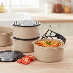 - 4 recipientes separados – almacenamiento higiénico y ordenado de distintos alimentos.