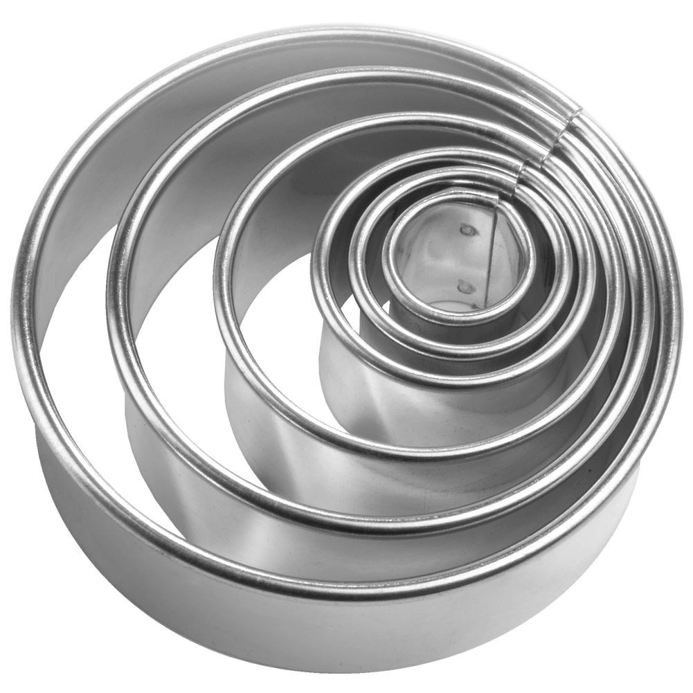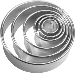 Descubre un juego universal de cortadores circulares con los que podrás crear clásicas galletas linzer, pan de jengibre y modernas galletas con efecto vitral. Gracias a las cinco medidas, crearás fácilmente formas multinivel, mini sándwiches u ornamentos de fondant. El acero inoxidable de calidad garantiza una larga vida útil y un corte preciso.