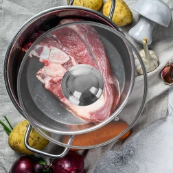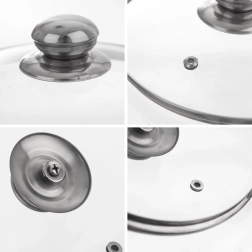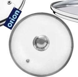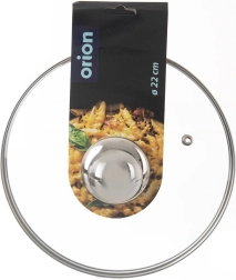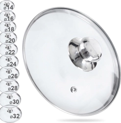 La práctica tapa de vidrio de 22 cm de diámetro es ideal para ollas, sartenes y cazos. El vidrio transparente resistente al calor permite controlar la cocción sin levantar la tapa, mientras que el borde de acero inoxidable y el asa metálica robusta garantizan una larga vida útil y un uso cómodo.