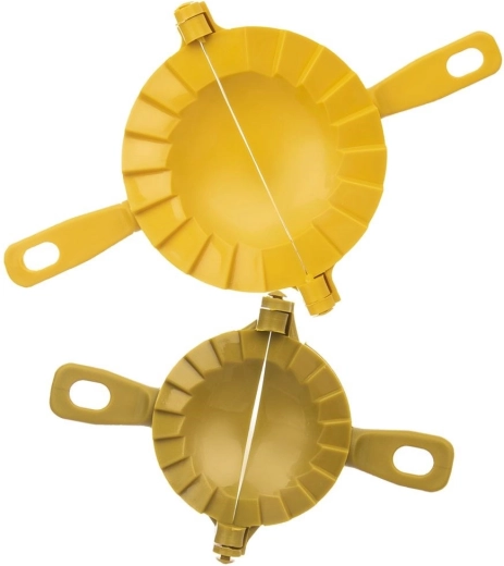 Los moldes están hechos de plástico de calidad en tonos neutros, se limpian con facilidad y son aptos para lavavajillas. Gracias al ojal/asa puedes colgarlos en el riel de la cocina y tenerlos siempre a mano. Perfectos para pierogi, raviolis, empanadas, pastelitos de fruta y otros horneados rellenos.