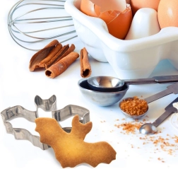 Crea galletas y pan de jengibre mágicos con motivo de murciélago. Este cortador de acero inoxidable de 8 × 5,5 × 1,5 cm es resistente, fácil de limpiar e ideal para Halloween y para hornear durante todo el año. Gracias a su borde preciso, recorta formas limpias en masa, fondant y otros materiales.