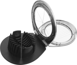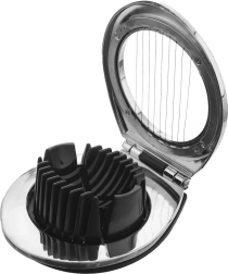 Práctico cortador de huevos de la línea LUXY para un corte rápido y uniforme. Ofrece 3 formas de corte (rodajas, gajos, cubitos), es resistente, multifuncional y apto para lavavajillas. Ideal para huevos, champiñones, kiwi o aguacate de hasta Ø 5,5 cm.