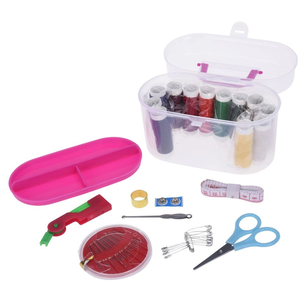 Práctico juego de costura con 50 piezas en un organizador portátil. Incluye hilos de colores, agujas, tijeras pequeñas, cinta métrica, botones, dedal, enhebrador y imperdibles. La caja ligera y transparente con clip es ideal para viajes y para reparaciones en casa. Hilos resistentes y elásticos que facilitan el zurcido y los arreglos rápidos de la ropa.