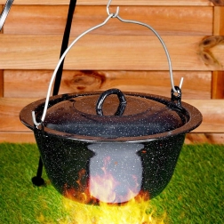 Esta tapa esmaltada de alta calidad está diseñada para calderos húngaros de 7,5 litros. La superficie esmaltada es higiénica, fácil de limpiar y ayuda a mantener una temperatura estable y la humedad del plato. Ideal para estofar, hervir y recalentar sobre fuego abierto.