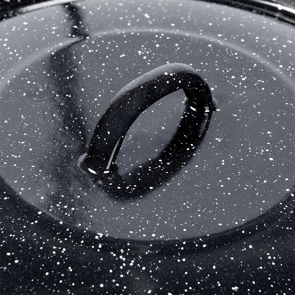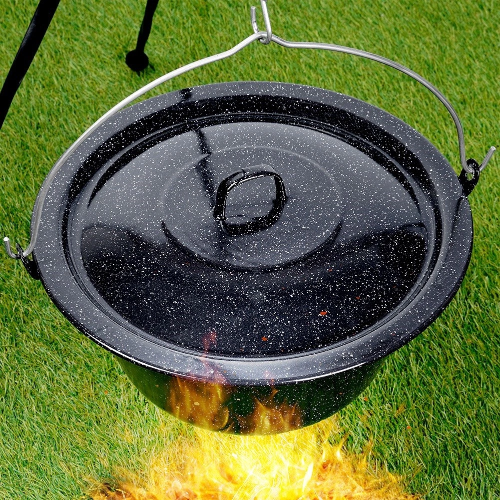 El esmalte negro protege contra la corrosión y los arañazos, es higiénico y fácil de limpiar: ideal para cocinar al aire libre con regularidad.