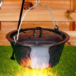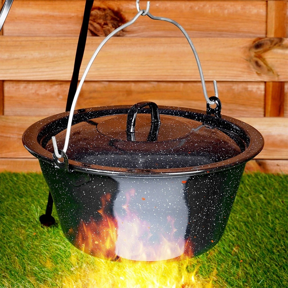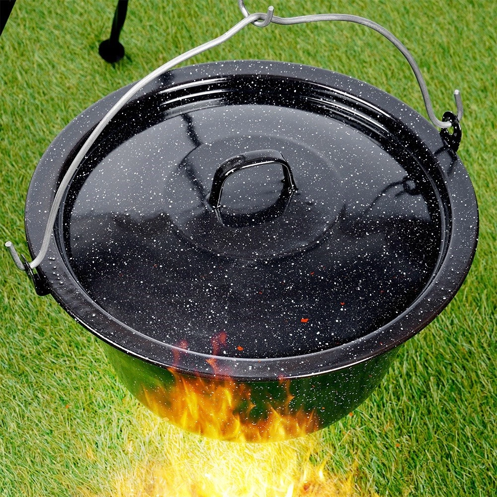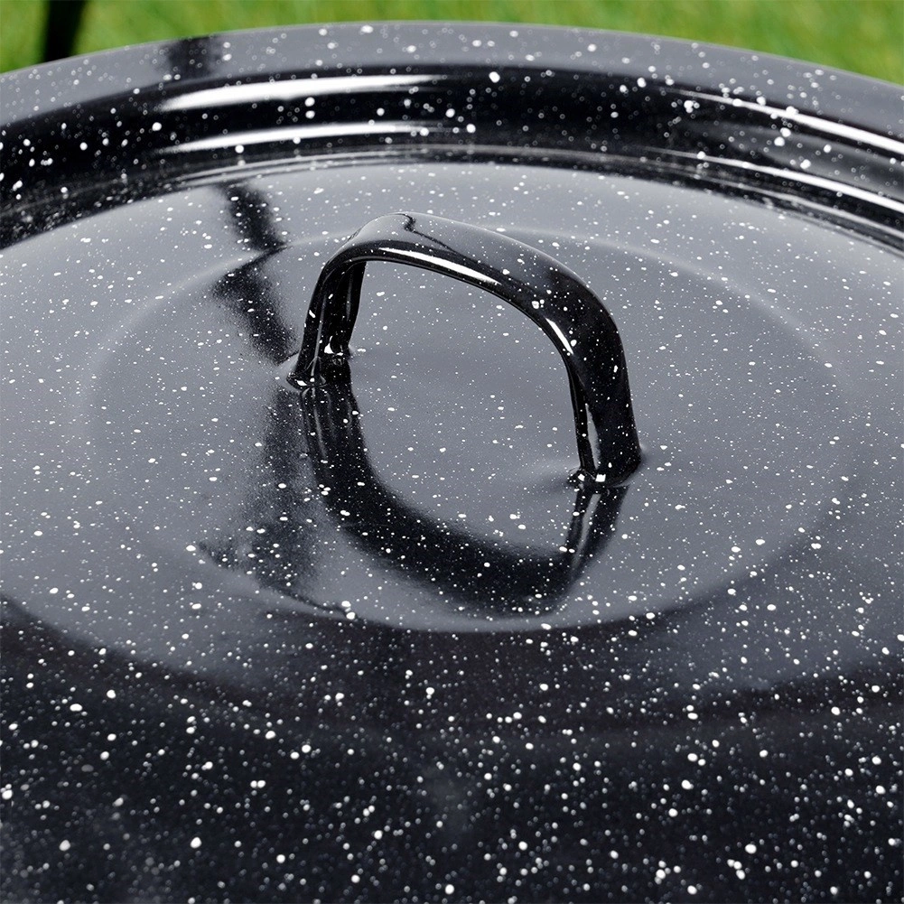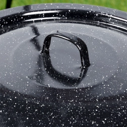 Esta tapa esmaltada es el complemento ideal para cocinar al aire libre en caldero, desde gulash hasta sopas. Se ajusta a calderos húngaros de 9,5 l y, gracias a su forma abombada, mantiene eficazmente el calor y la humedad, acortando el tiempo de cocción y mejorando el sabor final de los platos.