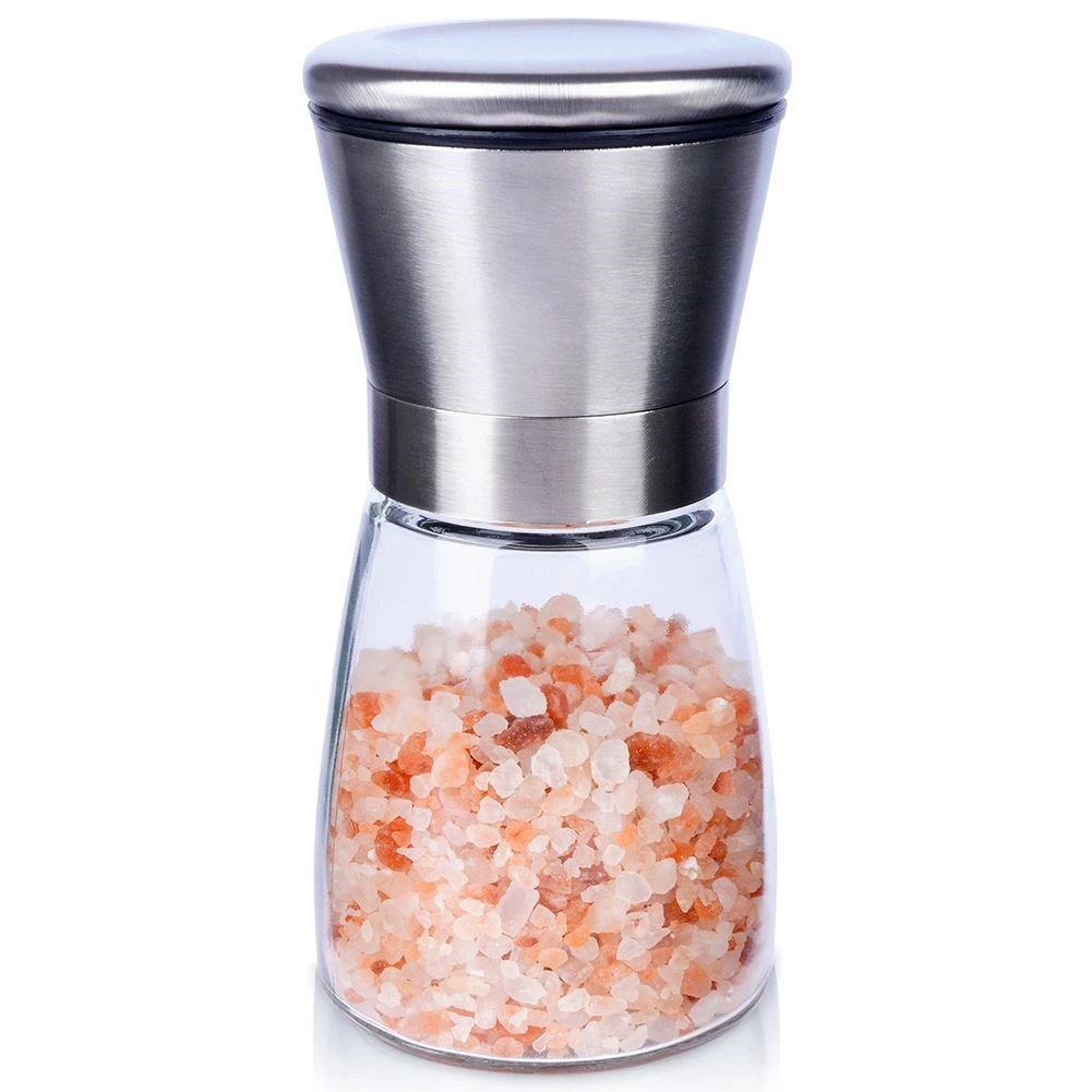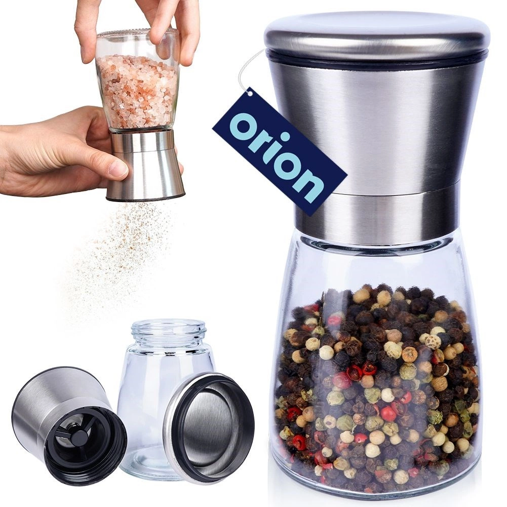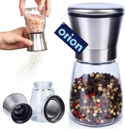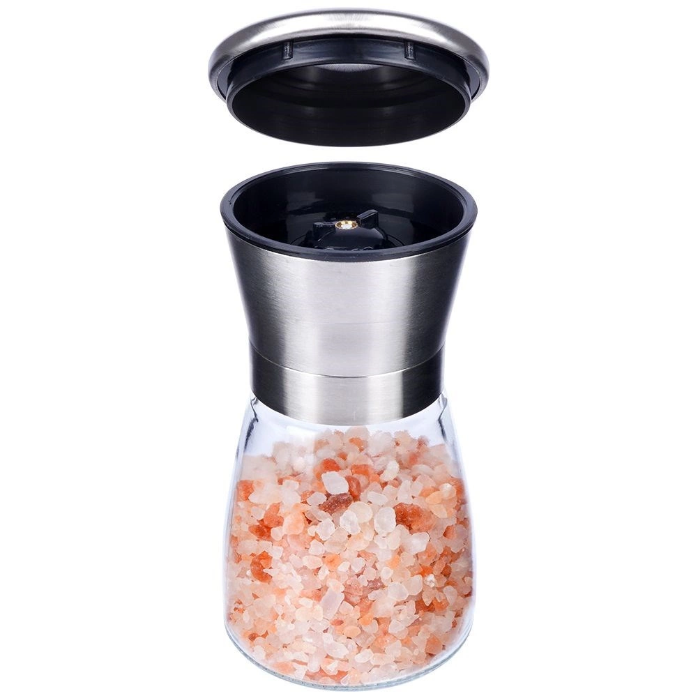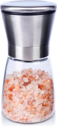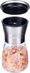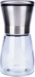 Práctico molino manual para sal, pimienta y otras especias de 13,5 cm de altura que combina vidrio y acero inoxidable para una larga vida útil. Cuenta con mecanismo de molienda cerámico, ajuste continuo de la molienda y tapa de cierre contra derrames. Su diseño elegante queda perfecto en cualquier cocina y en la mesa.