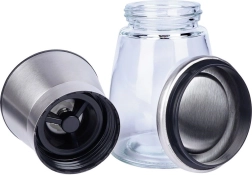 La combinación de vidrio transparente para controlar la cantidad y acero inoxidable para mayor resistencia asegura una larga vida útil y un aspecto moderno. La tapa retiene los restos de especias molidas y mantiene la cocina limpia. Adecuado para uso doméstico y en hostelería.