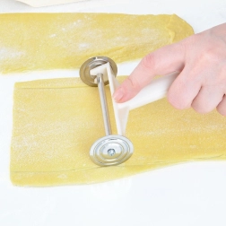 Tres accesorios con dos funciones cada uno, dos ruedecillas y soporte: prepara espaguetis, fettuccine, cintas, lasaña e incluso ravioli rellenos.