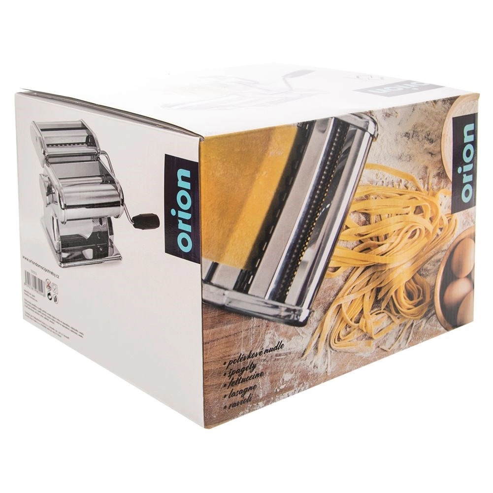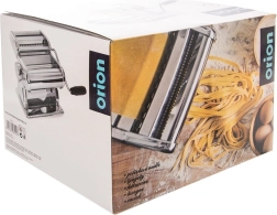 Descubre el placer de la pasta fresca con la robusta máquina manual ORION. Gracias a sus nueve posiciones ajustables, podrás laminar fácilmente la masa hasta un ancho de 15 cm y luego cortarla en distintos tipos de pasta: desde fideos finos hasta cintas anchas o lasaña. Un accesorio especial te permite preparar ravioli rellenos.