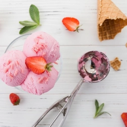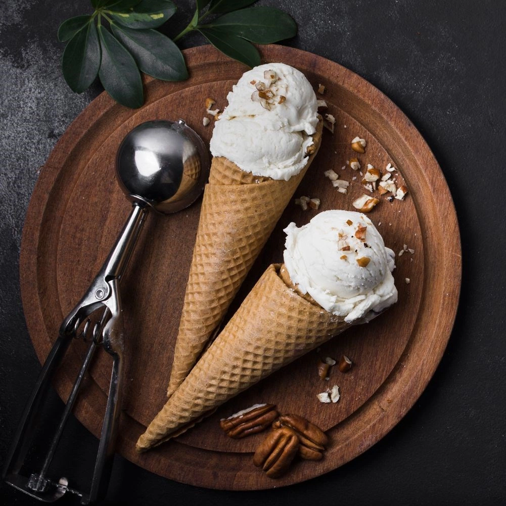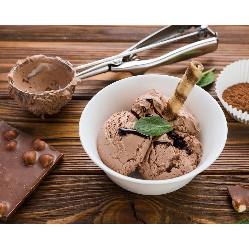 La cazoleta de 5,5 cm de diámetro y el mecanismo expulsor forman porciones perfectamente regulares de helado o puré.
