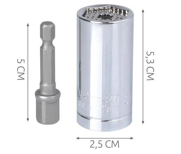 Nuestro vaso de cubo universal está diseñado para adaptarse a una amplia gama de cabezas de tornillos y tuercas. Con varillas metálicas integradas que se moldean alrededor del objeto, esta herramienta es un aliado indispensable para cualquier aficionado al bricolaje.