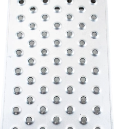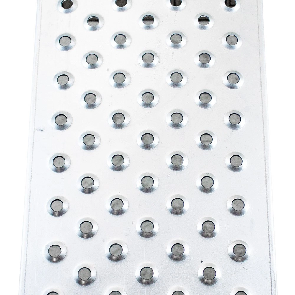 Los orificios perforados y texturizados aumentan la adherencia de las ruedas y garantizan el drenaje de agua y suciedad para un uso seguro en diversas condiciones.