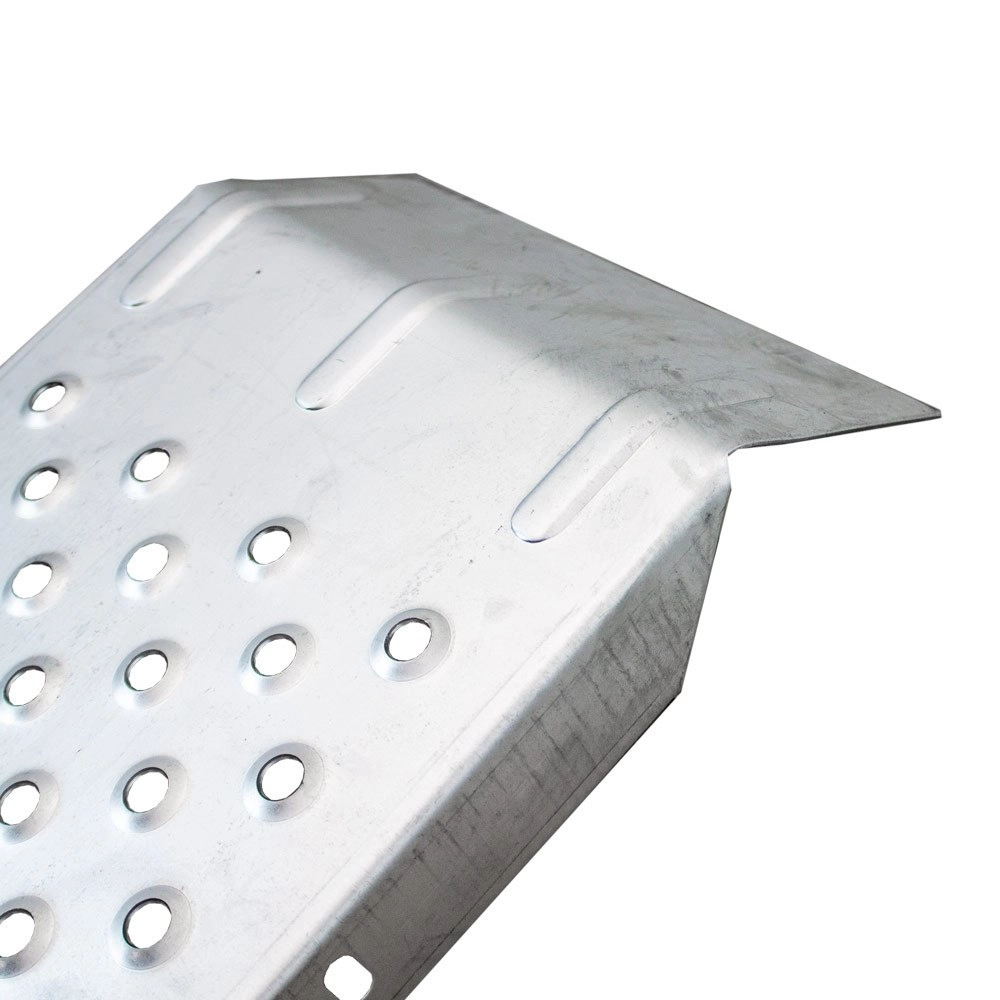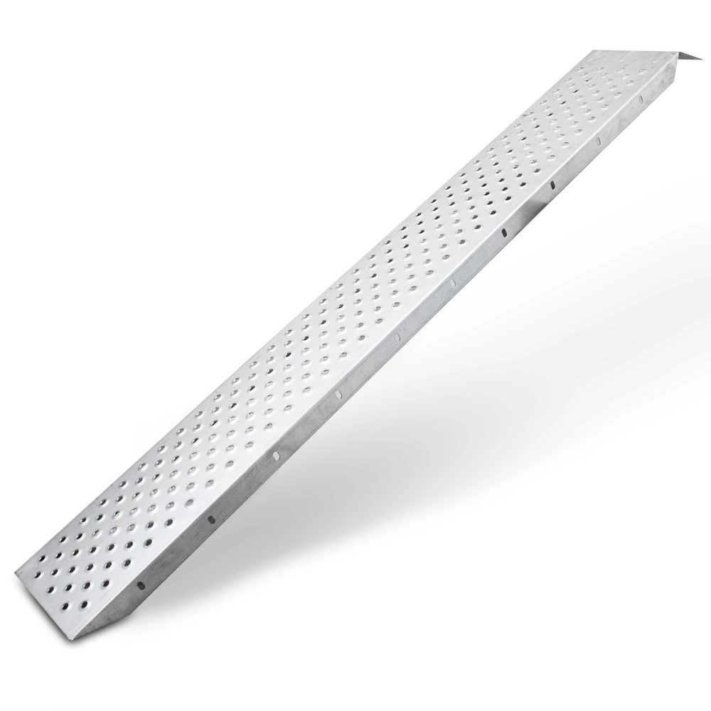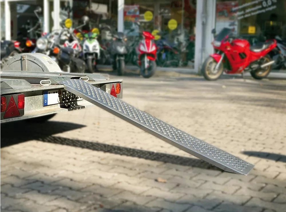 Estas rampas de acero están diseñadas para un acceso fiable y seguro de motocicletas, maquinaria de jardinería o equipos de taller a vehículos y plataformas. La superficie perfilada y perforada garantiza una excelente tracción y la evacuación de suciedad, mientras que el anclaje estable en forma de gancho permite una colocación rápida y segura en el borde de la zona de carga.