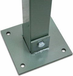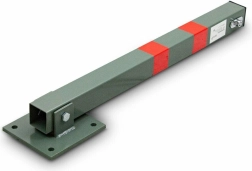 Gracias al color llamativo con bandas reflectantes, la barrera es bien visible. La placa base con orificios de montaje permite un anclaje firme.