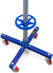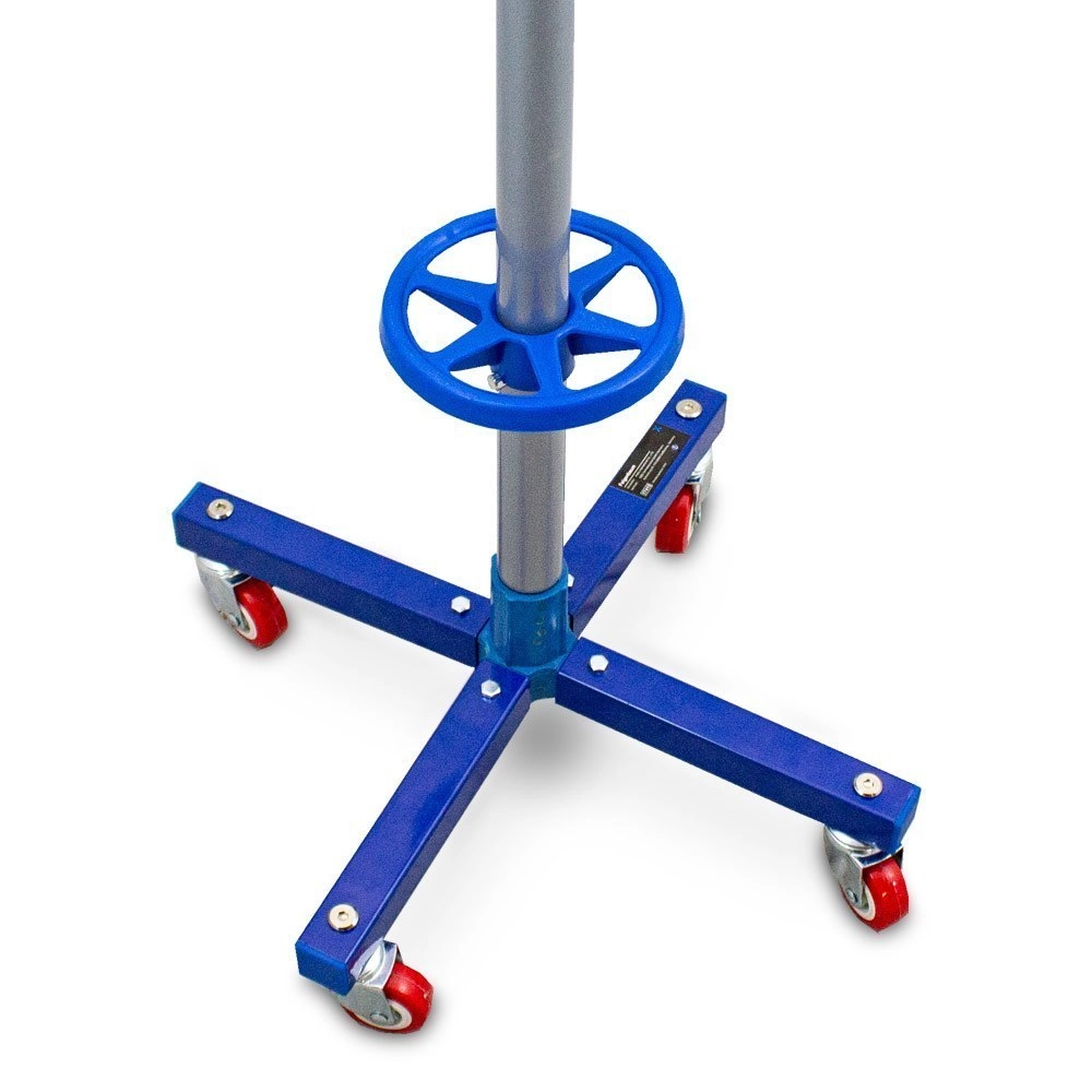 La base en cruz con cuatro ruedas giratorias permite un movimiento fluido incluso en espacios estrechos. Ideal para garajes y talleres donde cada centímetro cuenta.